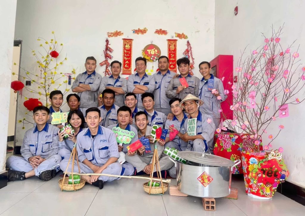 Không chỉ có buổi gặp mặt tại văn phòng POM, không khí đón Tết cũng rộn ràng tại các nhà máy, nơi các kỹ sư, vận hành viên vẫn đang miệt mài làm việc để đảm bảo hoạt động sản xuất diễn ra liên tục và ổn định. Mặc công việc bận rộn, đội ngũ O&M POM vẫn cố gắng dành thời gian chung tay trang trí, tạo nên những không gian Tết ấm áp và sinh động. Từ những tiểu cảnh trang trí tỉ mỉ, công phu, đến những cành đào, cây mai khoe sắc rực rỡ, tất cả đều thể hiện sự khéo léo, sáng tạo và tinh thần đoàn kết của người lao động POM (NLĐ).